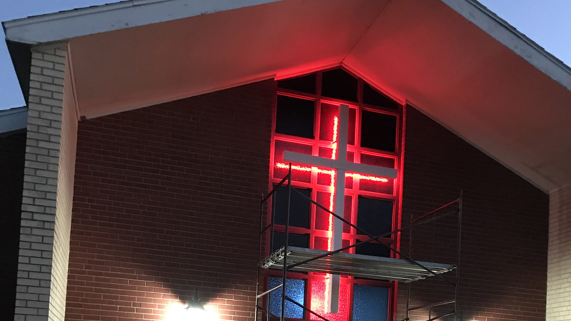 1. Paint window frames above entrance doors and install a cross with lighting on the surface of the windows. (It looks awesome)